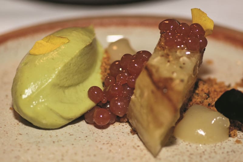 Y parece que las herramientas para tal cometido son las técnicas acabadas, la búsqueda constante de nuevos productos y una atención al detalle que apabulla. Para muestra, baste el mismísimo arranque, donde los acompañamientos se sirven en un tótem personal de teca, un adminículo a quienes los encargados de servicio llaman por un apelativo tan gráfico como cariñoso: Arturito. Es que este simpático y utraelegante utensilio claramente recuerda al robot de Star Wars. El punto es que se puede desmontar para ofrecer manteca ahumada, vegetales fermentados, encurtidos, Kimchi y un exquisito pan brioche servido tibio.