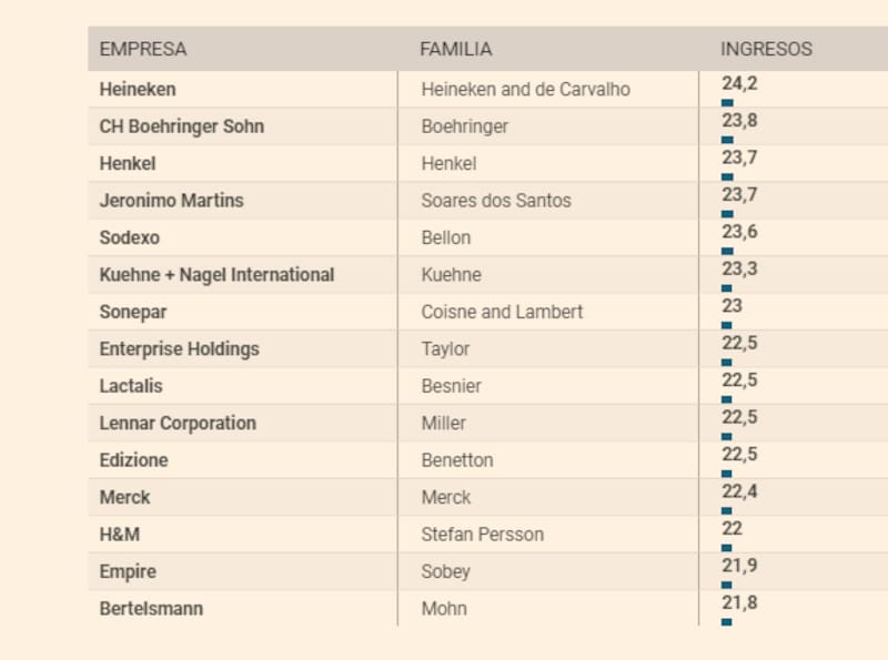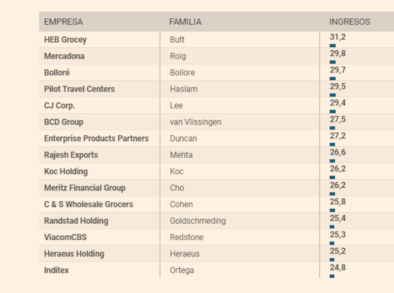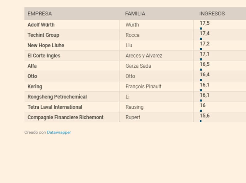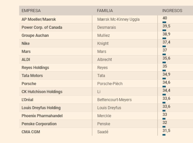Los datos incluyen a empresas privadas donde la familia controla más de la mitad del capital, y a compañías cotizadas en las que más de un tercio de las acciones son del clan familiar.