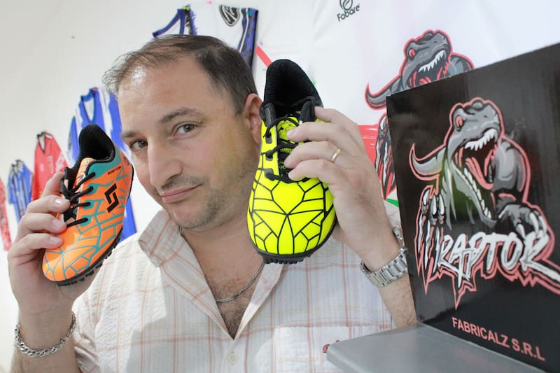 Martín Amoros se metió en el negocio del calzado hace 10 años por recomendación de su suegro, que fabricaba suelas. Probó haciendo pantuflas, ojotas e incluso sandalias de mujer. Este portafolio lo complementaba con algunos botines de fútbol que le compraba a otro productor. En 2020 los clientes empezaron a pedirle más botines, pero su proveedor le entregaba los pares a su propio ritmo. "Veía la guita que me estaba perdiendo de ganar. Detecté ese bache y me puse a fabricarlos yo mismo", recuerda. Durante la pandemia fundó Raptor y los números iban tan bien que mudó toda la operación a una fábrica de 1600m2 en Valentín Alsina, donde produce más de 20.000 pares por mes.