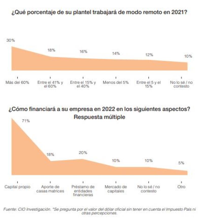 En el rubro financiero, los datos marcan que las empresas apuestan a financiación propia. El 71% señala que trabajarán con capital propio, y un 18% con aporte de sus casas matrices. Sólo el 20% asegura que irá a las entidades financieras y otro 10% apostará al mercado de capitales.