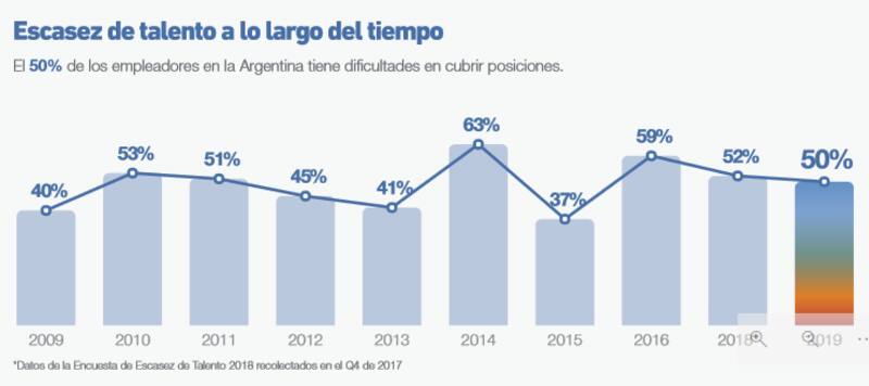 La escasez de talentos en el ámbito laboral representa una complicación para las compañías a la hora de encontrar el personal adecuado. Un informe elaborado por Manpower Group reveló que el 50% de los empleadores en la Argentina tiene dificultades para cubrir posiciones, consolidándose así como la quinta nación con mayor Escasez de Talento de la región.