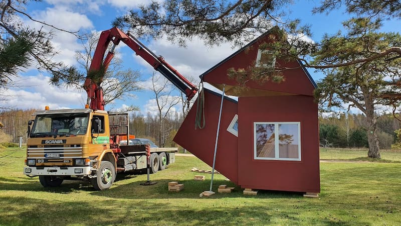 Las casas se fabrican con CLT, una especie de madera de ingeniería, lo que significa que las capas de madera se unen entre sí, creando un material compuesto. Se hace con el objetivo de diseñar la madera según especificaciones precisas y darle propiedades que normalmente no se encuentran en la madera.
