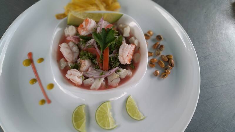 Ceviche: clásico indiscutido a base de pescado blanco o mariscos, lima, cebolla morada, cilantro y sal.