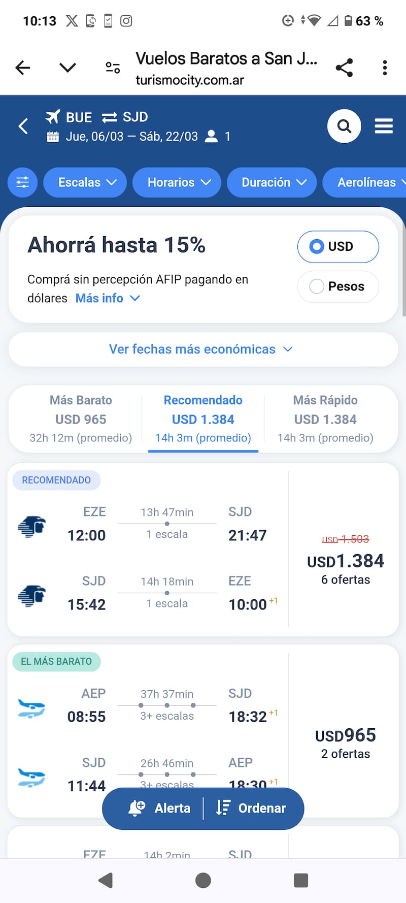 Recorriendo los diferentes vuelos, compañías aéreas y fechas, aparecen variantes, con o sin escala. Pero la recomendada es para preparar el pasaporte, ya que sale menos de U$S 1000.