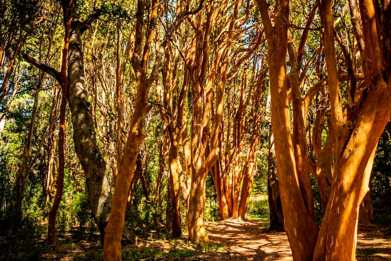 Siguiendo hacia el sur por el oeste del Neuquén, la Ruta de los Siete Lagos conduce hasta el Parque Nacional Los Arrayanes, en la Península de Quetrihué, vinculado a Villa La Angostura, que ofrece una red de senderos con increíbles vistas hacia los lagos de la zona.