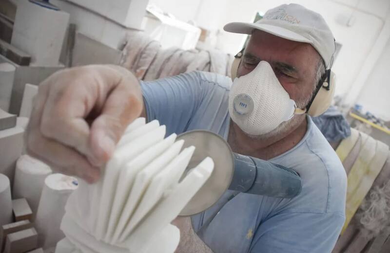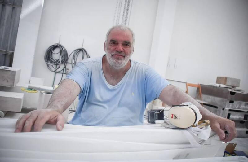 Para encontrarlo hay que pasar entre algunas piezas en construcción, grandes trozos de mármol con cortes y marcas acá y allá que van encontrando su forma en las manos del escultor. Atrás está el artista, sentado en una silla de madera tallando un trozo de mármol con una amoladora. Trabaja en una pieza, en dos, en tres, en varias al mismo tiempo. En el taller y afuera, donde por esos días terminan de dar forma a un nuevo museo que se proyecta como un "puente" entre el arte local y los ojos del mundo. O el arte del mundo y los ojos locales.