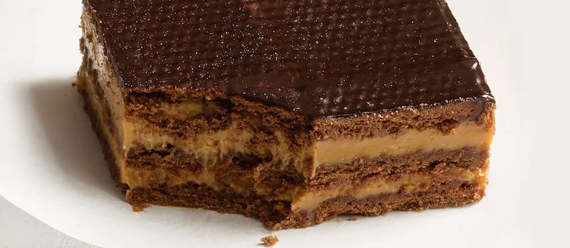 - Cortar la masa en cuadrados y armar capas alternadas con el relleno.
