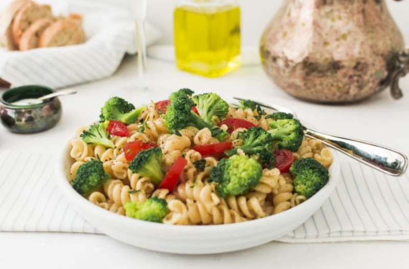 Acompañar el brócoli con pasta integral y otras verduras, añade fibra y proteínas, creando un plato nutritivo y equilibrado. (Foto: Freepik)