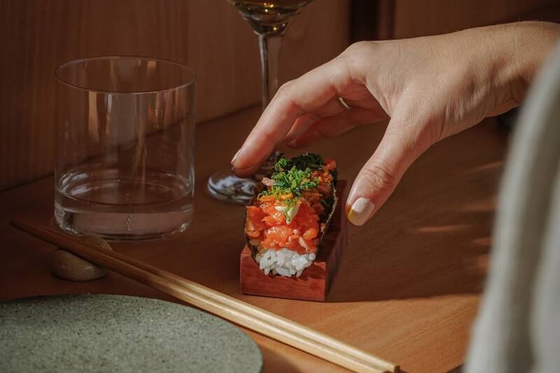 La propuesta se completa con un temaki abierto de trucha, mayonesa y umami. Como complemento, los clientes pueden optar por una selección de vinos y sakes internacionales para maridar la experiencia.