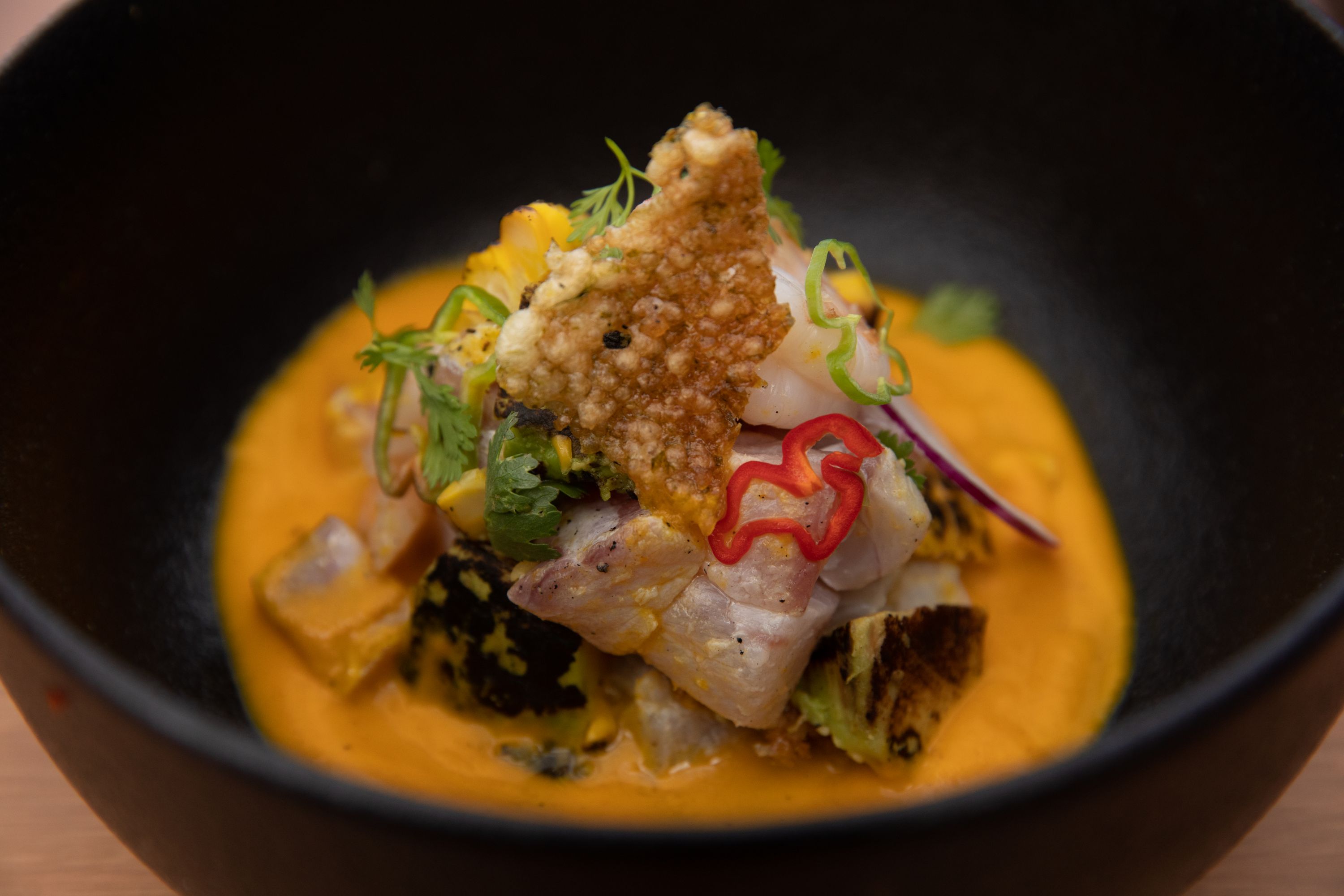 La cocina está a cargo del chef Leandro Bouzada y del Itamae Juan Matsuoka, quienes combinan técnicas originarias de Japón con sabores e ingredientes de origen peruano.