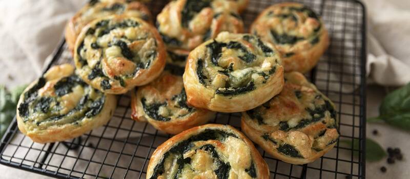 Un plato principal que captura el espíritu navideño, pero con un toque vegetal. Este rollo de hojaldre relleno de vegetales asados, espinacas y queso crema vegano será el centro de atención en tu mesa.