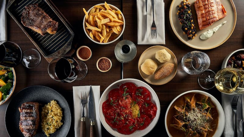 Entre las especialidades se encuentran el vacío con puré de papas, el centro de ojo de bife con ensalada rusa y un risotto de hongos.