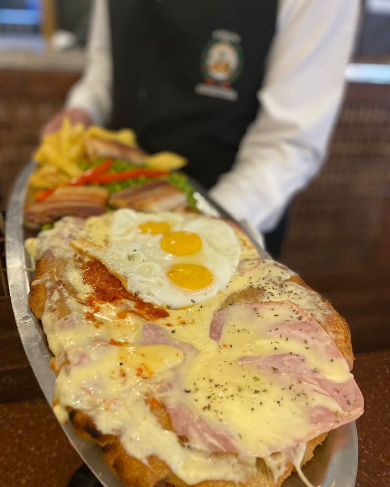 Otro gran imperdible es la milanesa de la casa, generosa y sabrosa, acompañada de panceta, queso fundido, jamón, morrón, huevo y papas fritas.