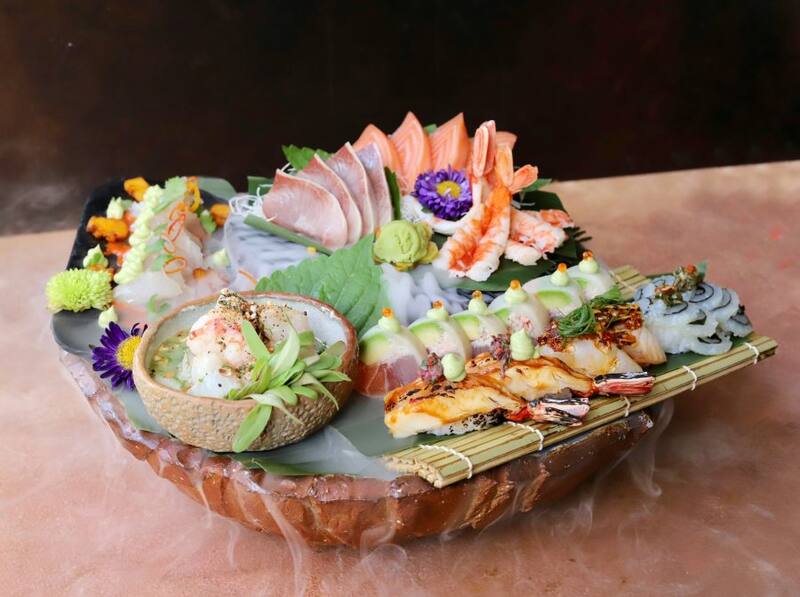 "Siempre seleccionamos los pescados del día. Las piezas y ceviches van rotando. El comensal confía en nuestro criterio de selección", dice Leandro Bouzada, chef ejecutivo de Osaka y presenta en la mesa una gigantesca tabla con más de 50 piezas del "Nikkei Bar Omakase" Por supuesto, es para compartir. Está compuesto por ceviche (según la selección del día); variedad de nigiris clásicos (salmón, lisa, langostinos); tiradito (en esta oportunidad fue de lisa con una salsa de rocoto ahumada); trío de nigiris, entre otras especialidades. La propuesta es ideal para maridar con un Pisco sour.