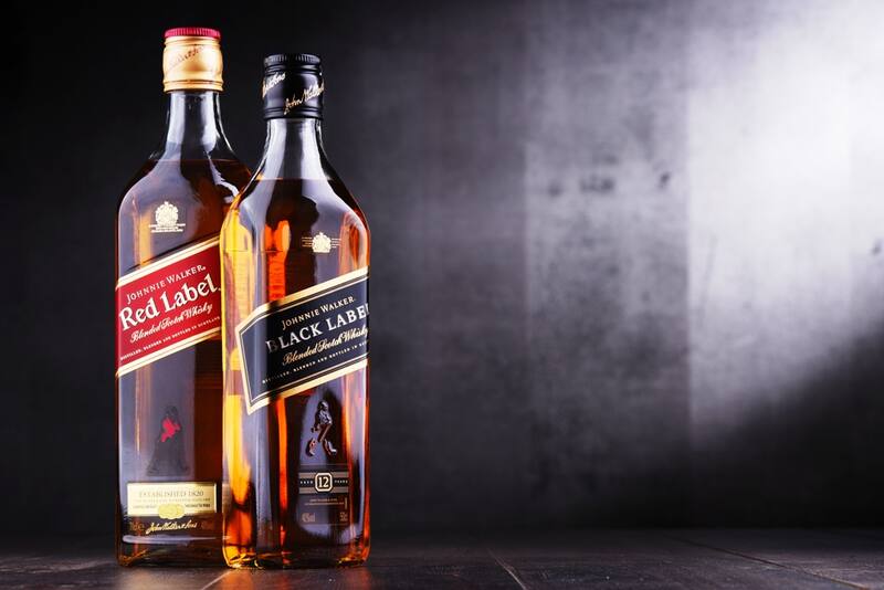 John Walker inició la historia del whisky blend más vendido del mundo cuando su padre falleció. En Kilmarnock, en 1819, vendió la granja familiar para abrir una tienda de comestibles. Se transformaría en un sagaz comerciante de vinos y destilados, hasta que se lanzó en el arte de mezclar sus propios whiskies, alentando por su hijo Alexander. En 1867 lanzó su primer blend y lo llamó Old Highland Whiskey. Diseñó la botella cuadrada para evitar roturas y distinguirse. En 1909 cambió el nombre de su gama de whiskies y sus etiquetas: así nacieron Johnnie Walker Red Label y Johnnie Walker Black Label. Fue en esta época cuando el joven ilustrador Tom Browne diseñó el famoso logotipo conocido como El Caminante, ese dandy de botas, bastón y galera.