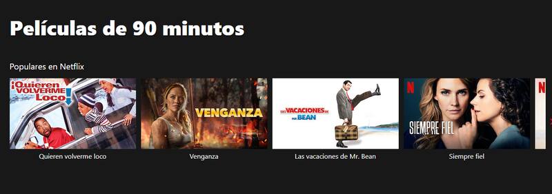 Esta misma manera de buscar películas de 90 minutos o menos también aplica para las de terror (con el código 81466239) y comedias románticas (81466228).