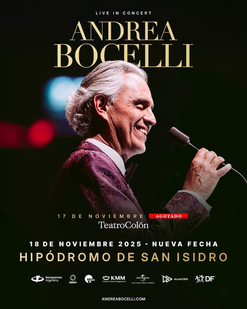 Tras un histórico sold-out en el Teatro Colón, Andrea Bocellianunció una segunda función en Argentina. El cantante se presentará el 18 de noviembre en el Hipódromo de San Isidro, ¿dónde comprar las entradas?