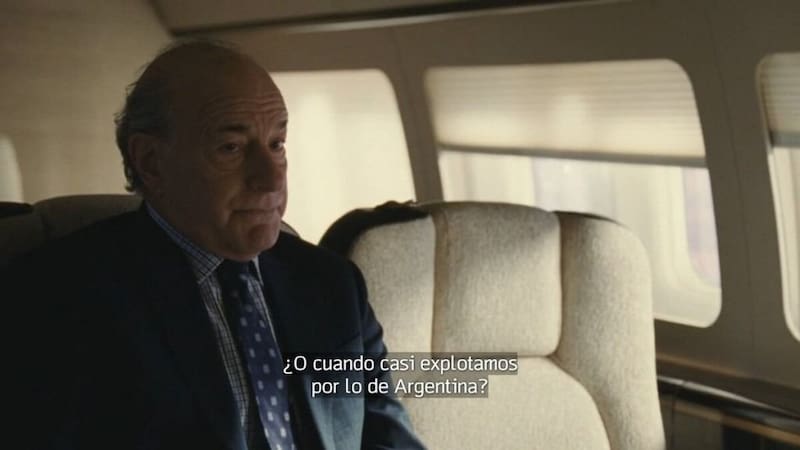 La referencia se ve en el minuto 29, cuando el personaje Logan Roy está en un avión privado en viaje a Sarajevo con parte de su directorio. El personaje de Frank Vernon (Peter Friedman) dialoga con Karl (David Rasche) sobre los problemas que han atravesado en todos estos años y consideran que uno de los peores fue cuando "casi explotamos por lo de Argentina".