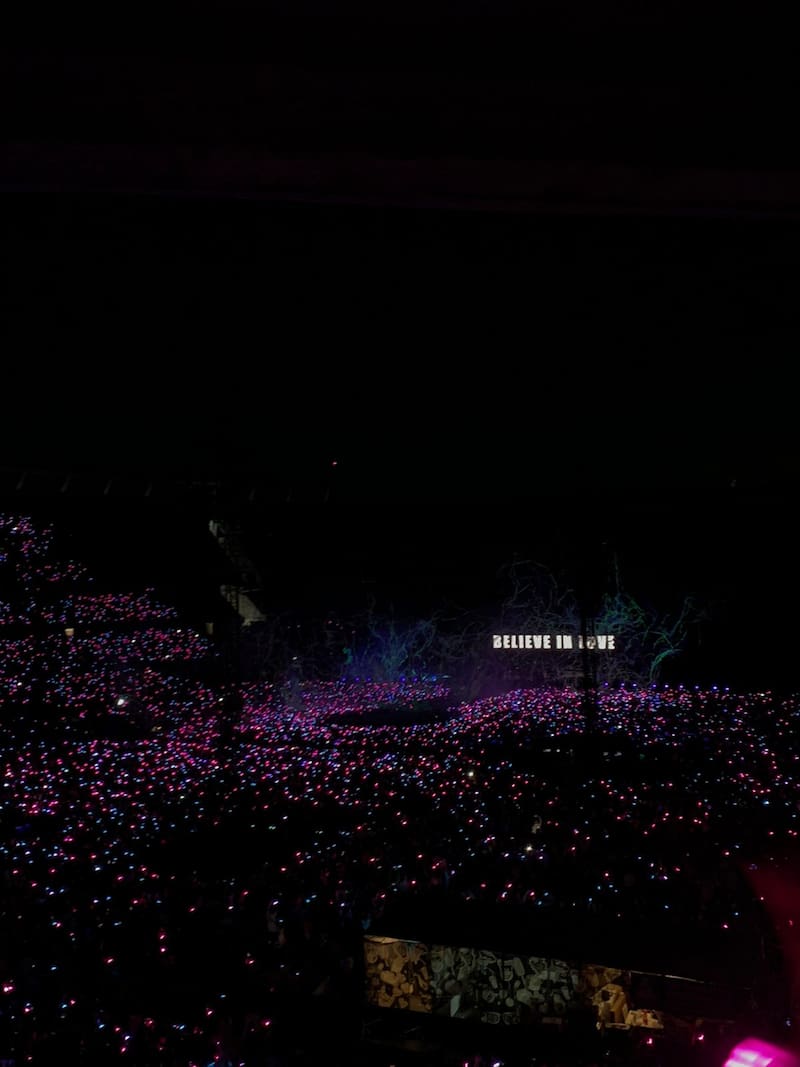 Minutos después y ya con los cuatro integrantes del conjunto británico de regreso en el escenario, se dio paso al cierre mientras la pantalla principal del estadio proyectaba la línea "Creé en el amor".
