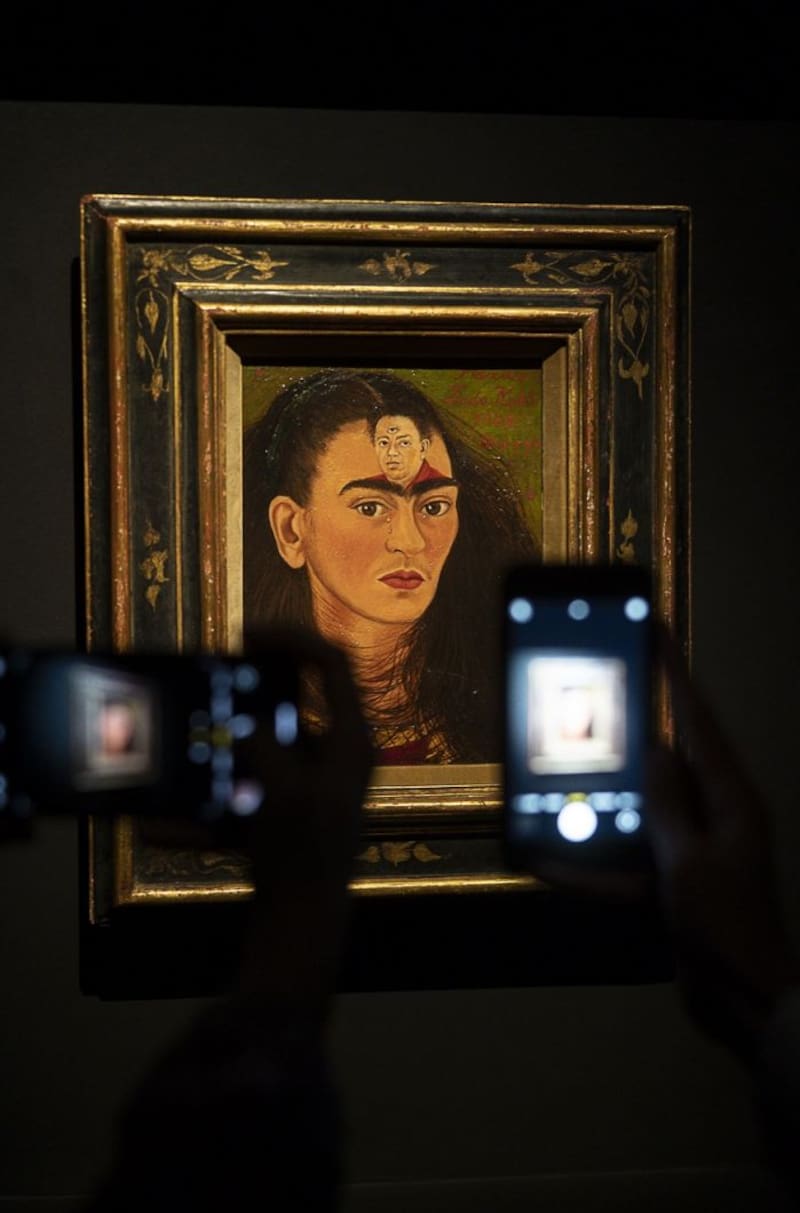 Con la emoción a flor de piel por el privilegio de haber participado de un recorrido de prensa, y por lo tanto ser de las primeras personas en encontrarme cara a cara con esta obra que hizo historia, intento absorber cada sensación. Diego y yo es el último autorretrato que realizó la artista antes de morir en 1954. Y a su vez, es la obra más cara de la historia del arte latinoamericano, adquirida el año pasado por el fundador del Malba, Eduardo Constantini, para su colección personal por casi 35 millones de dólares.