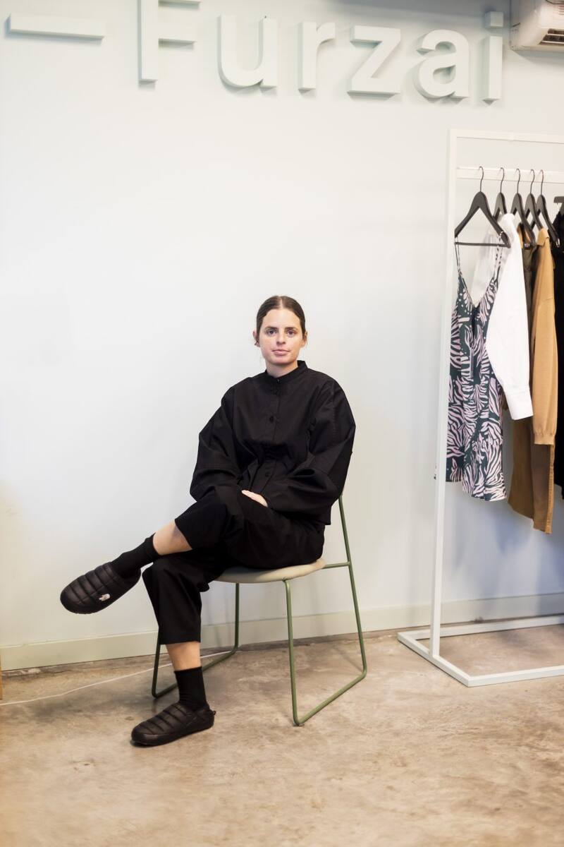 Rocío "al ser una marca chica, tratamos de tener talles que abarquen distintas siluetas, y no tener productos para un solo tipo de cuerpo, sino que los calces sean abarcativos. No hacemos ni todo slim, ni todo mega oversize. Lo que nos pasa en el piso de ventas es que hay hombres que van a comprarse pantalones a Furzai, por la tipología y el tipo de diseño que proponemos".