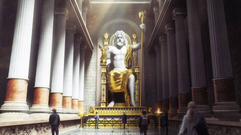 La Estatua de Zeus, obra maestra del escultor Fidias, fue una imponente escultura crisoelefantina. Situada en Olimpia, esta se perdió en el siglo V d.C por un incendió.