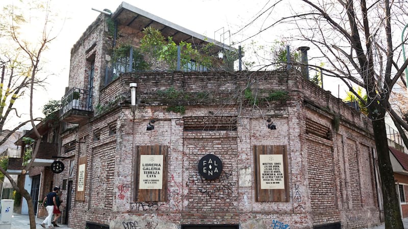 Mientras que la fachada de la librería caféFalena da la impresión de ser un lugar en ruinas, con paredes despintadas y una entrada compuesta por una puerta de metal. Pero una vez adentro se puede ver un local con buena iluminación, un patio interno y dos grandes habitaciones donde la gente se puede sentar a tomar algo mientras lee alguno de los libros disponibles.