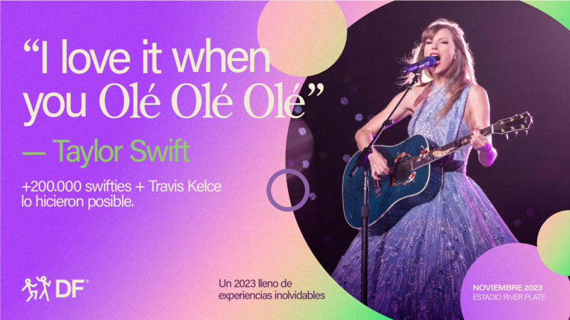 Poco tiempo después, DF Entertainment comunicaría lo que fue el boom musical del año: la primera visita de la estrella pop Taylor Swift. El país entero se conmocionó antes, durante y después del paso del "The Eras Tour" por el estadio Mås Monumental, del que la productora tiene uso exclusivo para espectáculos musicales.