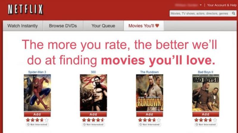 Por ese entonces, Netflix ya introdujo un sistema de recomendación de películas personalizado que usaba las calificaciones de los usuarios para predecir cuánto le gustaría una película a un suscriptor. Ese algoritmo se llamó Cinematch.