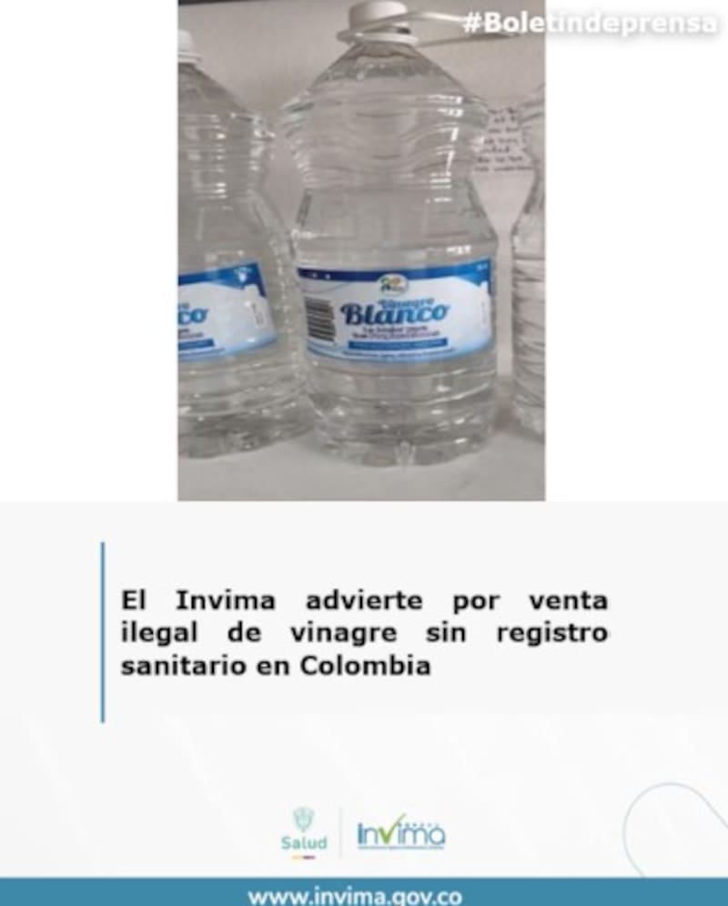 El Invima advirtió que el vinagre blanco se promociona como acompañante de comidas y como insumo de limpieza. Esta doble finalidad puede generar confusión y aumentar el riesgo de consumo inadecuado. La entidad enfatiza que este vinagre es considerado fraudulento y no debe ser comercializado ni consumido bajo ninguna circunstancia.