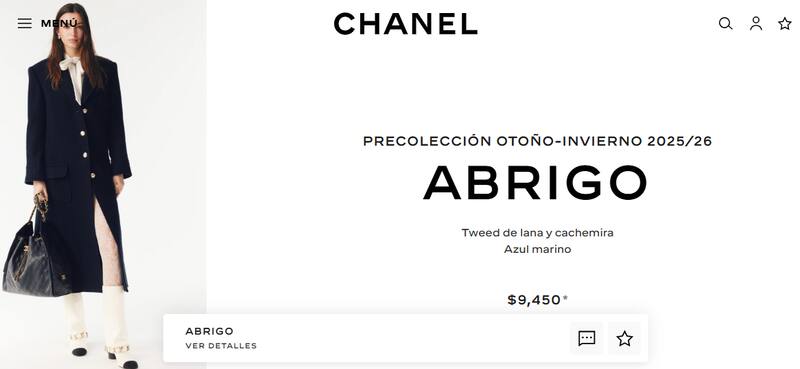 En contraste, el abrigo de Chanel no tiene precio publicado. La marca solo lo ofrece bajo pedido en boutiques seleccionadas, lo que implica un costo considerablemente más alto en comparación con la opción de Shein. Según estimaciones en foros y sitios especializados en moda de lujo, prendas de características similares de Chanel pueden superar varios miles de dólares.