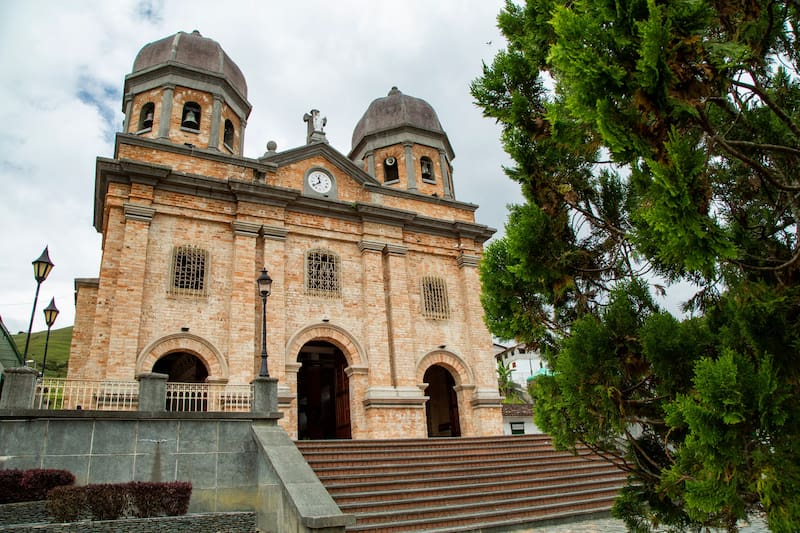 Durante la temporada de fin de año, el pueblo se transforma en un escenario mágico adornado con luces, mientras el aroma del café antioqueño acompaña la tranquilidad de sus calles empedradas.