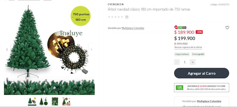La reconocida cadena de retail en Colombia ofrece un árbol de Navidad importado de la marca Evergreen a un precio único en el mercado, con un descuento especial por tiempo limitado.