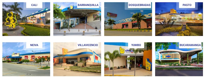 Actualmente, el centro comercial ÚNICO tiene presencia en Bogotá, Cali, Barranquilla, Pereira, Villavicencio y Neiva. Cada sede cuenta con una oferta comercial que incluye marcas nacionales e internacionales, zonas de comida y espacios de entretenimiento.