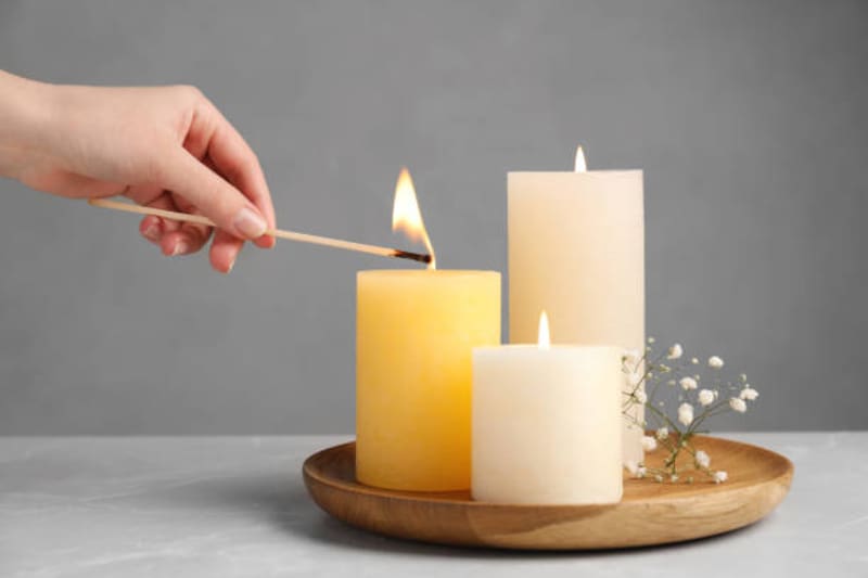 - Encender la vela: coloca la vela en el centro del plato blanco. Enciéndela y medita unos minutos visualizando cómo tu deseo se materializa.