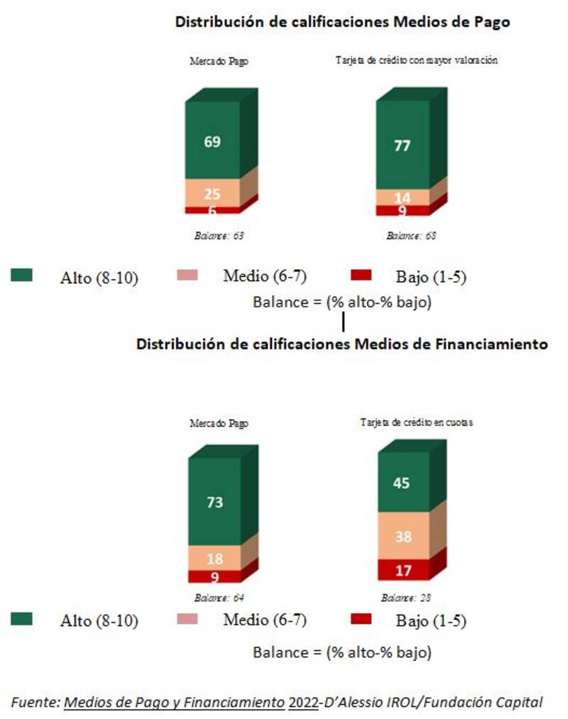 Asimismo, se observa un grado homogéneo y alto de conformidad en su uso como medio de pago y de financiamiento, superando en esta última categoría a la tarjeta en cuotas.