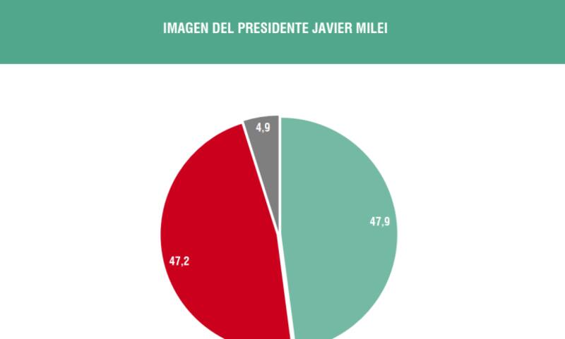La consultora Analogías realizó un estudio nacional para evaluar la gestión del gobierno de Milei en sus primeros seis meses. La imagen del presidente Javier Milei resultó negativa en un 47,2% y positiva en un 47,9%, mostrando una ligera ventaja positiva.