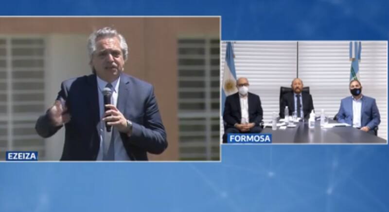 Conectado por videoconferencia, el gobernador Ricardo Quintela destacó la "mirada federal" del Gobierno para que el país "crezca armónicamente", mientras que su par de Formosa, Gildo Insfrán, destacó que "después de cinco años se empiezan a hacer las primeras viviendas".