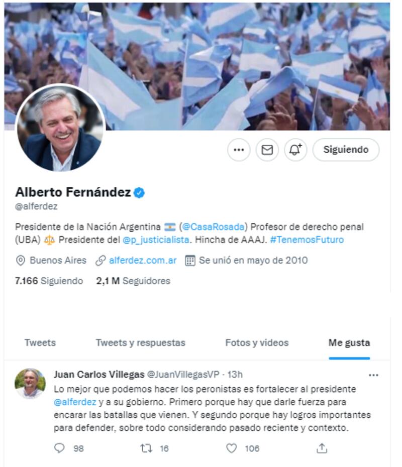 El presidente Alberto Fernández sumó este martes un nuevo capítulo a la interna del Frente de Todos y avaló en Twitter las advertencias que lanzó un dirigente mendocino sobre el futuro del Gobierno.