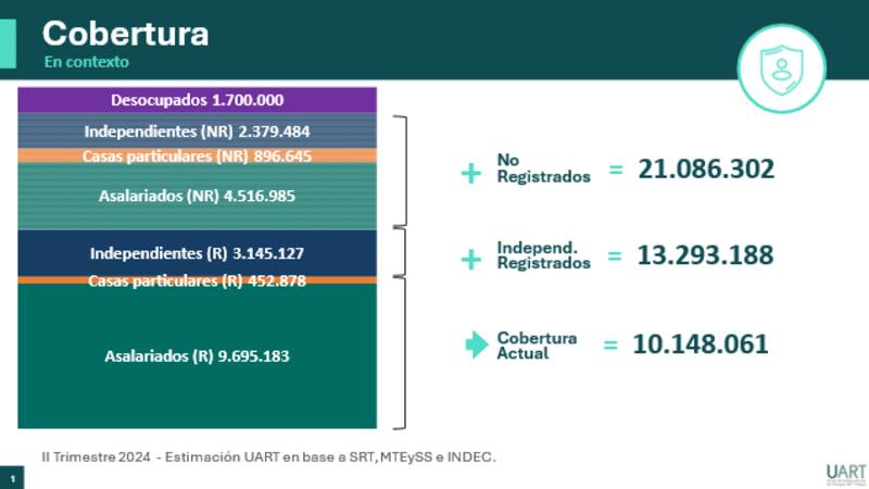 Para la Unión de Aseguradoras de Riesgos del Trabajo (UART), esta tendencia en la judicialidad se ha convertido en uno de los lastres que ahoga la generación de empleo de calidad en el país. Las ART hoy cubren a 10.148.061 personas (trabajadores asalariados en blanco) y a 1,06 millón de empleadores. Pero esa población de trabajadores podría duplicarse si se considera a los independientes (registrados y no registrados) y a los asalariados informales.