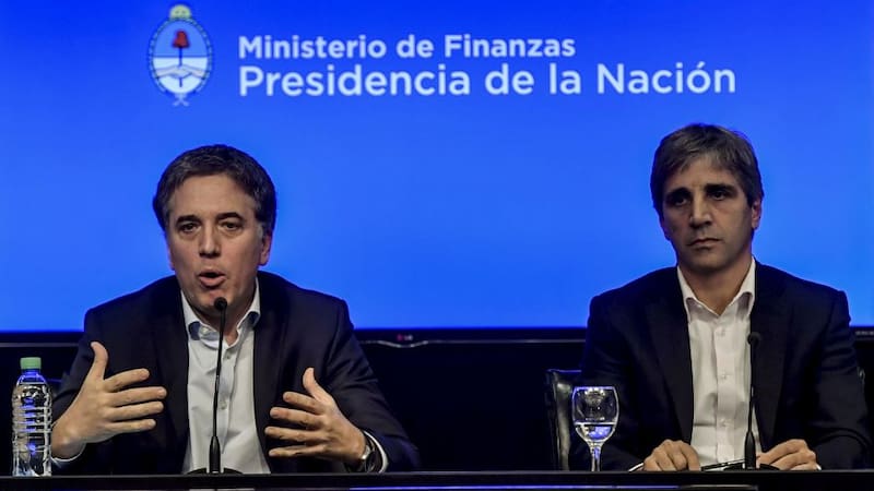 El ministro de Finanzas, Luis Caputo, junto al de Hacienda, Nicolás Dujovne, en conferencia de prensa