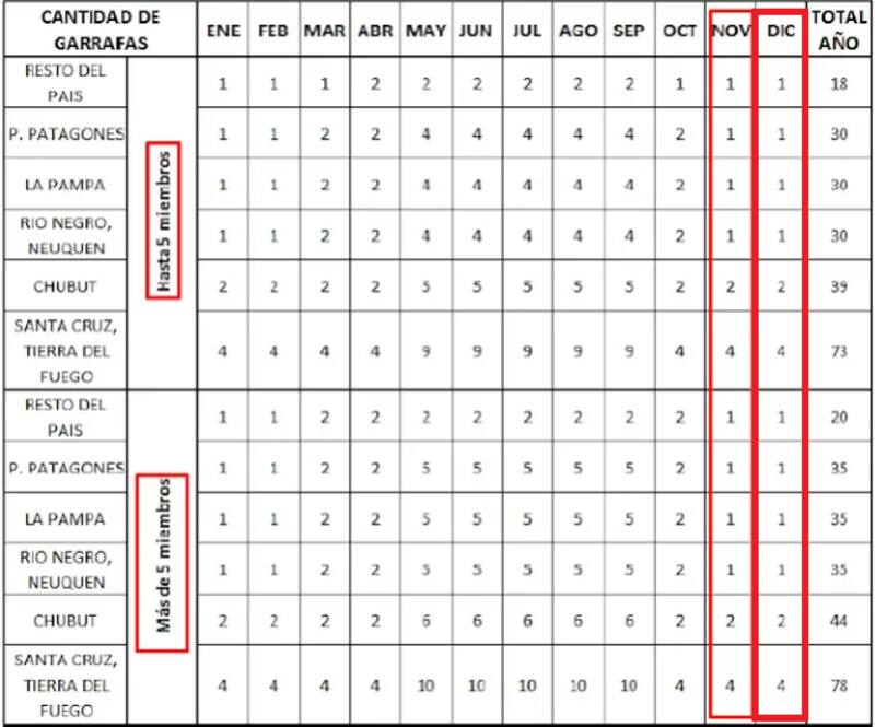De acuerdo a la Resolución 49/2015, emitida por la Secretaría de Energía, la cantidad de garrafas se determina en función a tres parámetros: