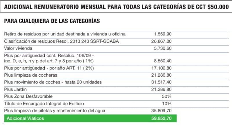 Por el resultado de las negociaciones también se actualizaron losvalores de los plus, del retiro de residuos y de las jornadas de suplencia.