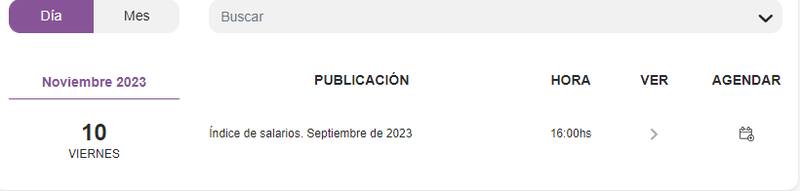 - Índice de Salarios INDEC: 10 de noviembre.