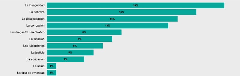 El estudio consulta sobre las principales preocupaciones y un tema viejo -pero no por ello menos actual- vuelve a la palestra: la inseguridad escaló de 9% en diciembre a 19% en marzo, probablemente alentada por hechos luctuosos como el asesinato de una niña en ocasión de robo en La Plata.