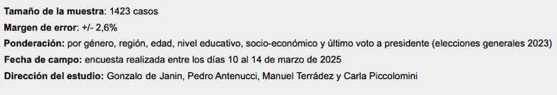 La consultora Equipo Mide analizó las impresiones de encuestados en la primera quincena de marzo, cuando aún no se había disipado el escándalo de la memecoin Libra, pero donde todavía es difícil mensurar los efectos de la marcha que la semana pasada se desarrolló en Congreso y que terminó con centenares de detenidos y un herido de gravedad.