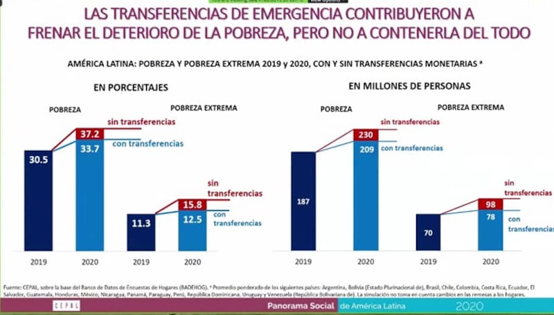 La pobreza extrema pasó de 70 millones de personas a 78 millones, pero hubiera llegado a 98 millones de personas en América Latina.