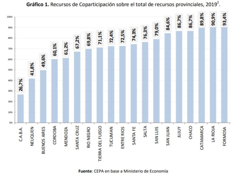 El derrumbe de los últimos meses afecta las finanzas públicas de varias provincias del norte y del noroeste cuyos ingresos dependen de la coparticipación. Por ejemplo, a lo largo de 2019, el 93,4% de los recursos de Formosa provienen de esta vía, el 90,9% de los de La Rioja, el 89,8% de los de Catamarca y el 86,7% de los de Chaco y Jujuy.