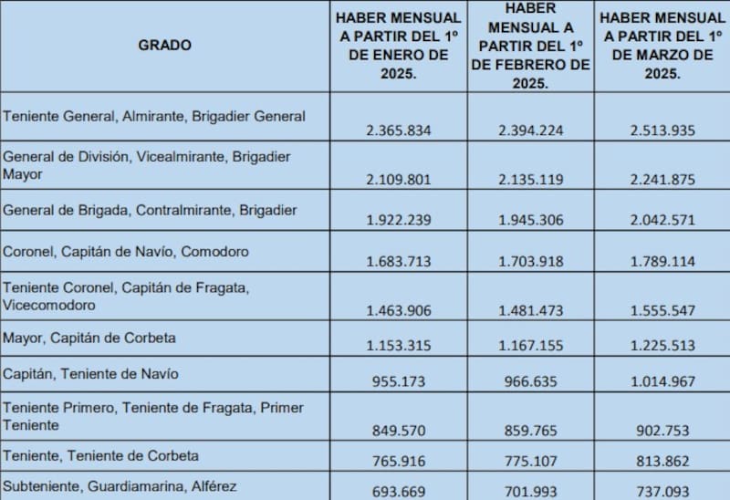 Aumento para las Fuerzas Armadas: cómo quedan las escalas en marzo 2025