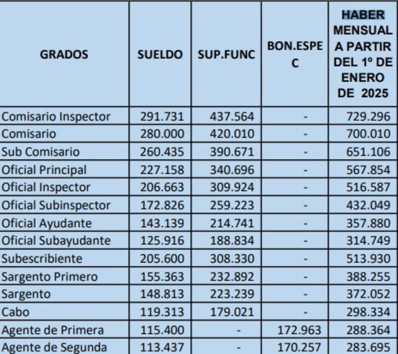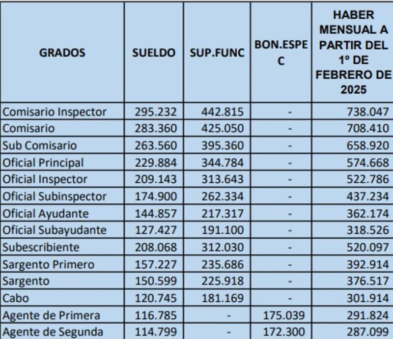 La suba, se explicó, comenzó a regir a partir de marzo 2025 y se debe a "otra etapa de jerarquización en mérito de la capacidad, responsabilidad y dedicación".